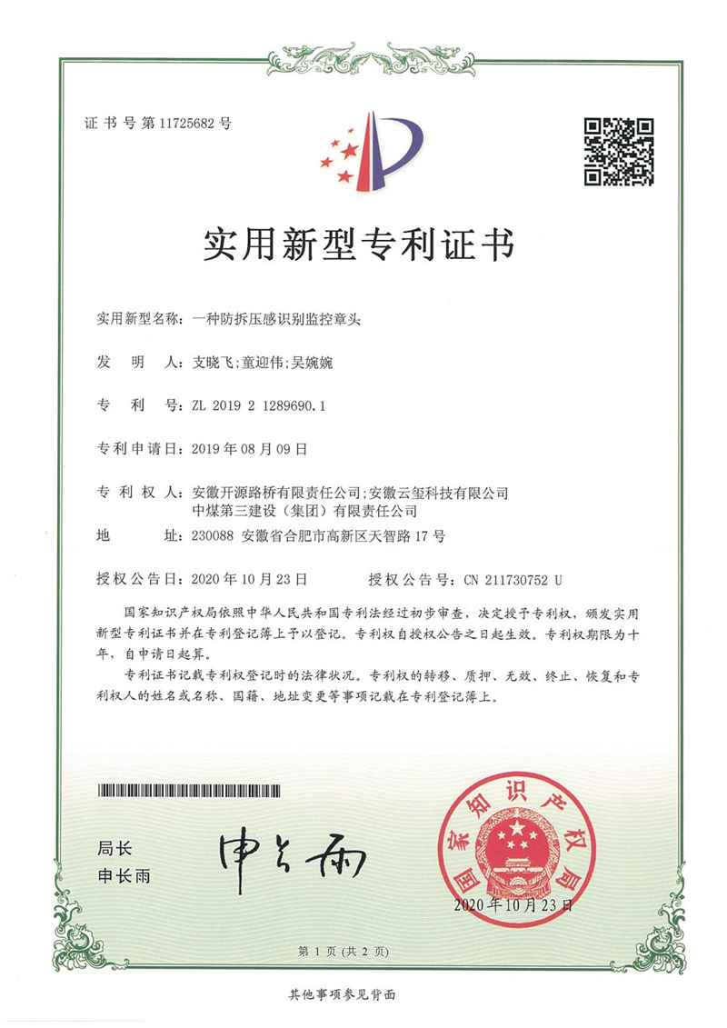 一種防拆壓感識(shí)別監(jiān)控章頭