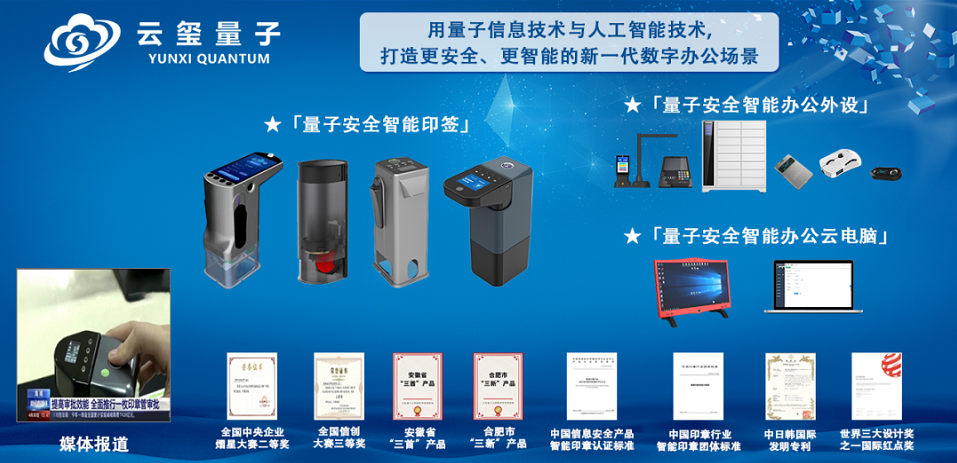 量子信息未來產(chǎn)業(yè)科技園是以中國科大和合肥高新區(qū)為共同主體,聯(lián)合科技領軍企業(yè),聚焦量子科技方向,規(guī)劃建設未來產(chǎn)業(yè)科技園;以完善體制機制為重點,培育引進高層次科技領軍人才和創(chuàng)新團隊,提升專業(yè)化科技成果轉(zhuǎn)化和孵化能力,構(gòu)建未來產(chǎn)業(yè)應用場景,打造極具活力、引領未來、享譽世界的“量子中心”。安徽云璽量子科技有限公司位于中國科大先進技術研究院未來中心,注冊資本2600萬元。公司是國家信創(chuàng)工委會成員企業(yè),中國信創(chuàng)500強企業(yè),合肥市量子信息產(chǎn)業(yè)重點企業(yè)。從事量子信息技術和人工智能技術融合創(chuàng)新,打造新一代更安全、更智能數(shù)字辦公產(chǎn)品。產(chǎn)品包括量子安全智能辦公和量子安全智能印簽產(chǎn)品,并為用戶提供量子安全網(wǎng)絡、量子安全云服務整體解決方案。公司是一體式智能印章技術原創(chuàng)發(fā)明人,擁有中日韓發(fā)明專利,獲國務院國資委央企熠星大賽全國二等獎。全球首創(chuàng)發(fā)明了內(nèi)置垂直翻轉(zhuǎn)取墨技術、可驗碼防偽智能印章技術,實現(xiàn)對日歐國際先進印章技術的領先,獲中日韓多項發(fā)明專利。云璽量子在世界印章行業(yè)實現(xiàn)技術領先、專利領先、標準領先,引領千年傳統(tǒng)印章向新一代智能印章的創(chuàng)新變革,徹底解決社會印簽管控難題。自主研發(fā)的量子安全智能辦公系統(tǒng)獲全國信創(chuàng)大賽三等獎(長三角區(qū)域第二名),包括量子安全云辦公應用軟件、云服務,量子安全云電腦,量子安全智能外設、量子安全智能硬件終端。通過量子安全云服務和標準化插件,為用戶通用云辦公、云服務提供輕量化量子安全技術升級方案。公司現(xiàn)有機構(gòu)股東: