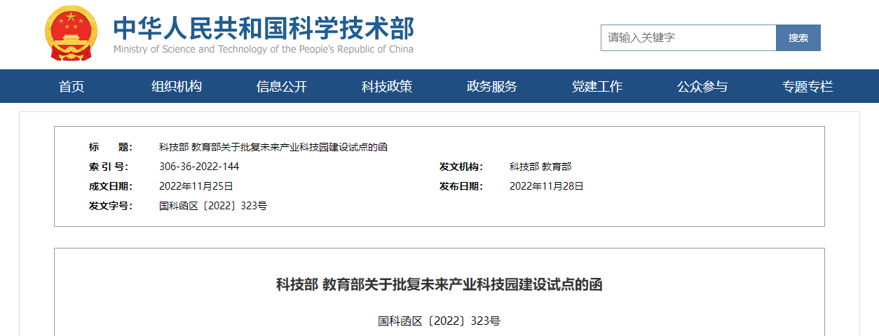 科技部 教育部關于批復未來產(chǎn)業(yè)科技園建設試點的函