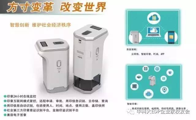據(jù)童總介紹,云智能印章2015年開始研發(fā),2016年底開發(fā)出工程機,目前產(chǎn)品已小規(guī)模生產(chǎn)、銷售。未來5年,云智能印章將替代目前30%-50%的傳統(tǒng)印章,解決印章管控的難題。云智能印章與傳統(tǒng)印章相比,不僅是做到安 全管控,還能實現(xiàn)互聯(lián)網(wǎng)遠程管理,包括遠程申請、審批、授權(quán)、監(jiān)控。下一步,團隊將在云智能印章中,融合電子遠程簽章系統(tǒng),使互聯(lián)網(wǎng)云智能印章實現(xiàn)有紙實物蓋章和無紙電子簽章的無縫覆蓋。同時,除了印章系統(tǒng),個人簽名系統(tǒng)和云智能簽字筆也在開發(fā)中,不久將推向市場。項目充分運用物聯(lián)網(wǎng)技術(shù),專注內(nèi)控流程管控和痕跡管理,解決管理流程漏洞和效率問題。