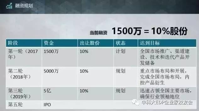 計劃融資1500-2500萬。在全國范圍內(nèi)的重點地區(qū)和城市,深入推廣,打造和穩(wěn)固公司在創(chuàng)新市場和領(lǐng)域的領(lǐng)導(dǎo)地位。規(guī)劃3年時間,引 領(lǐng)行業(yè)變革,確立市場領(lǐng)導(dǎo)地位,實現(xiàn)銷售突破20億元。
