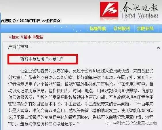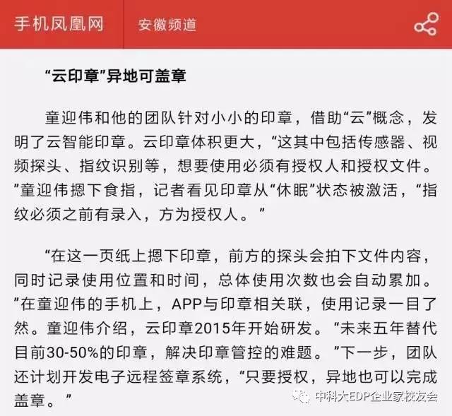 近日,由中科大先研院持股孵化企業(yè)安徽云璽科技研發(fā)的項目——互聯(lián)網(wǎng)云智能印章項目,成功入圍國務(wù)院國資委央企熠星雙創(chuàng)大賽決賽,并最終進入熠星雙創(chuàng)平臺資本對接大名單。