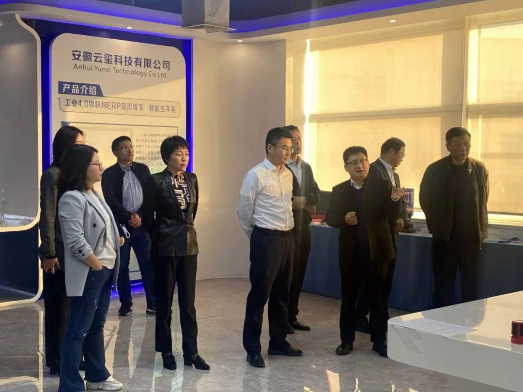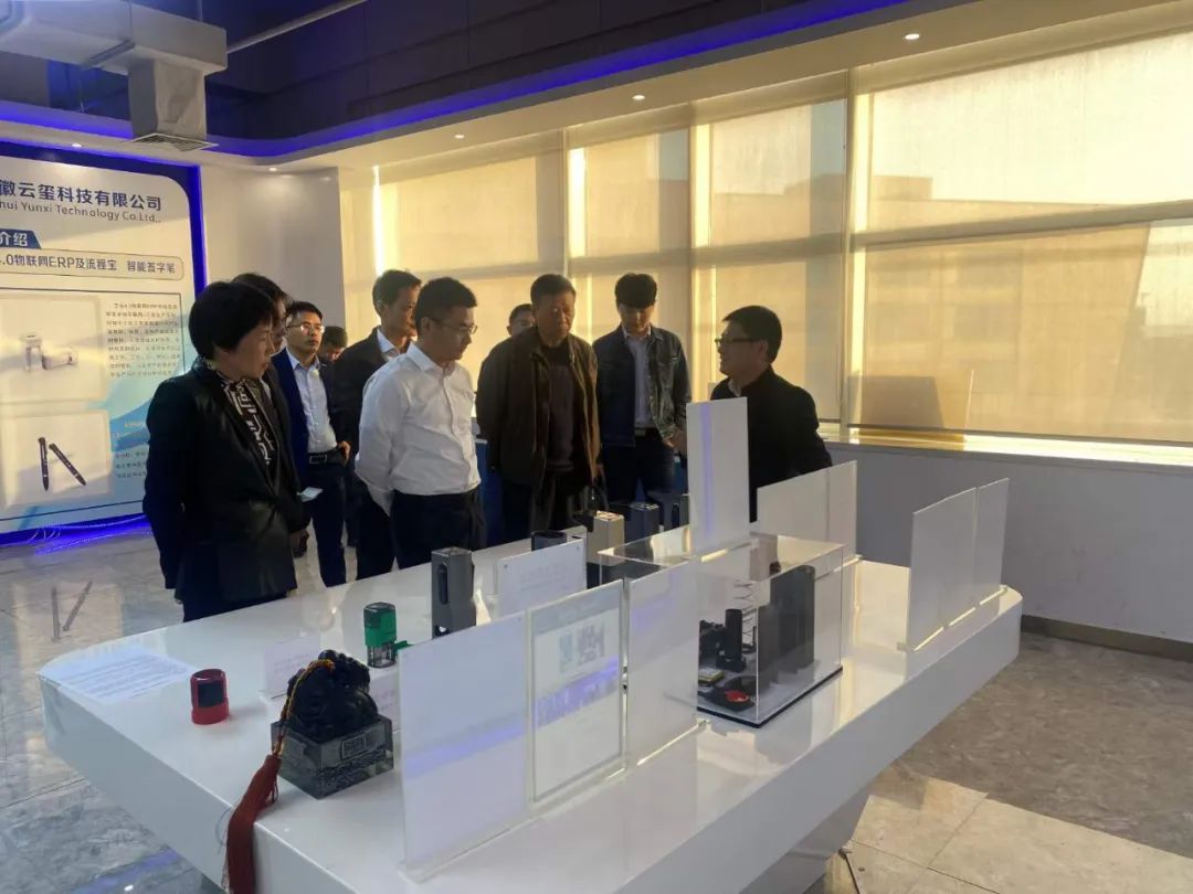 10月19日下午,安徽省合肥市委常委袁飛蒞臨安徽云璽量子科技有限公司(以下簡稱“云璽量子”)深入調(diào)研指導(dǎo),市發(fā)改委主任拱艷 、市投促局副局長江小軍、高新區(qū)管委會(huì)副主任方向民、市科技局總工程師高致遠(yuǎn)等陪同調(diào)研。中國科技大學(xué)先進(jìn)技術(shù)研究院領(lǐng)導(dǎo)湯家駿、云璽量子負(fù)責(zé)人童迎偉接待。