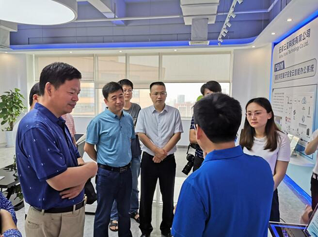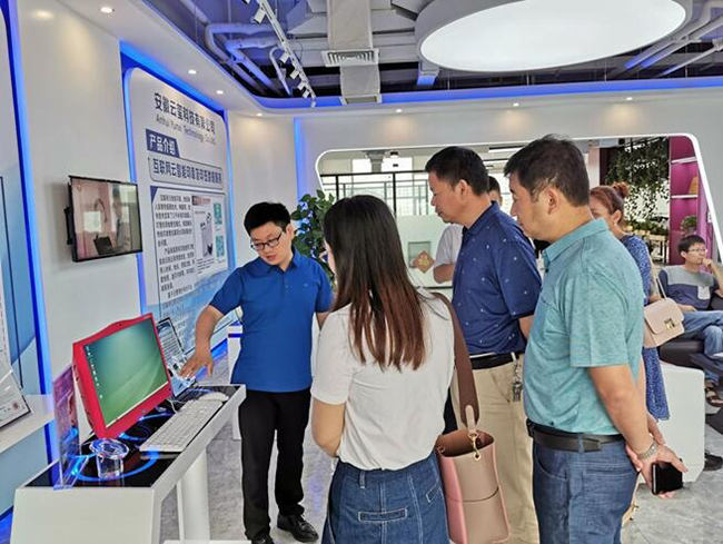 6月17日上午,阜陽師范大學物電學院老師們在??蒲刑帍埍_處長、院黨委馬健書記、朱勇副院長的帶領(lǐng)下,走進中國科大先進技術(shù)研究院云璽科技公司進行參觀考察。