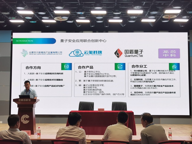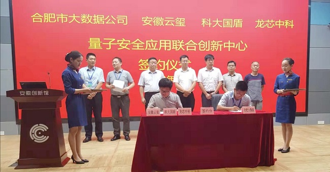 7月23日下午,由合肥市大數(shù)據(jù)資產(chǎn)運(yùn)營公司聯(lián)合云璽科技、科大國盾量子、龍芯中科等四家產(chǎn)業(yè)關(guān)聯(lián)公司成立“量子安 全應(yīng)用聯(lián)合中心”簽約儀式在安徽創(chuàng)新館隆重舉行。