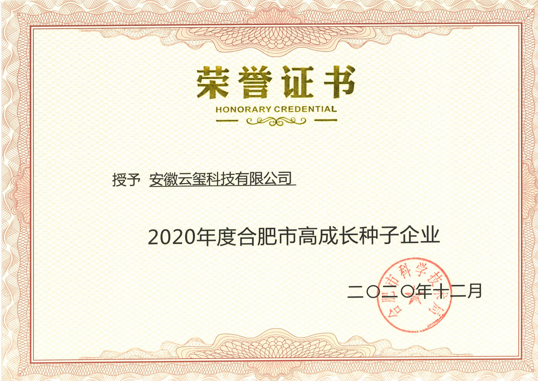 熱烈祝賀我司被評為2020年度合肥市高成長種子企業(yè)