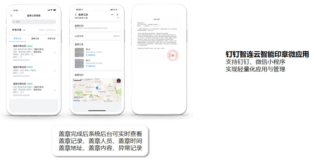 日常印章管理遇到子公司用印、外帶用印等場(chǎng)景管理的痛點(diǎn),融合對(duì)接智能印章管理系統(tǒng),完成了合同審批到蓋印的閉環(huán),并在各個(gè)用印場(chǎng)景中都實(shí)現(xiàn)全流程、全場(chǎng)景、全功能的目標(biāo),解決蓋印安全和效率的痛點(diǎn),目前已應(yīng)用于多個(gè)城市。