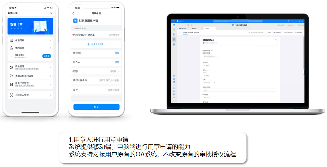 需要登陸多個(gè)平臺(tái)、在不同的流程中完成用印審批、調(diào)閱用印記錄。